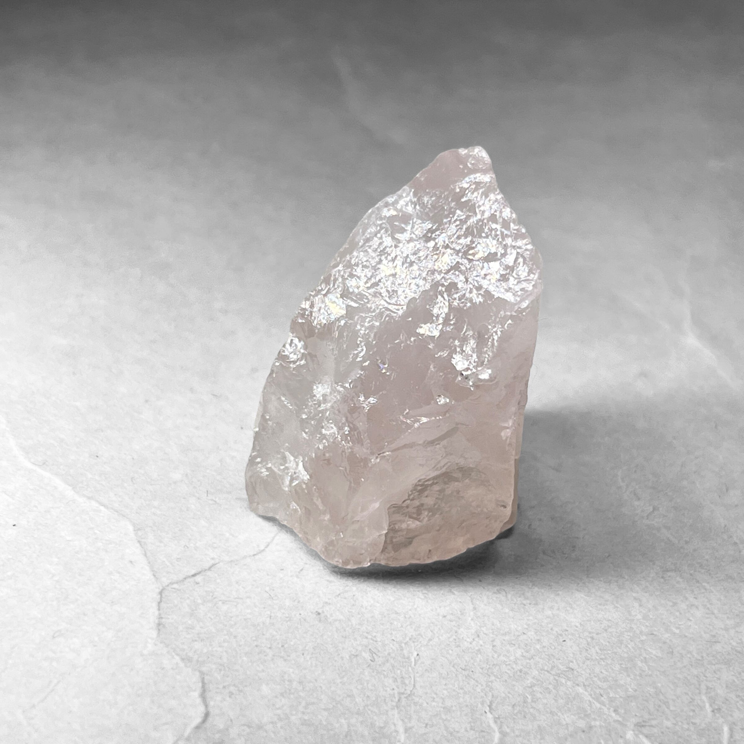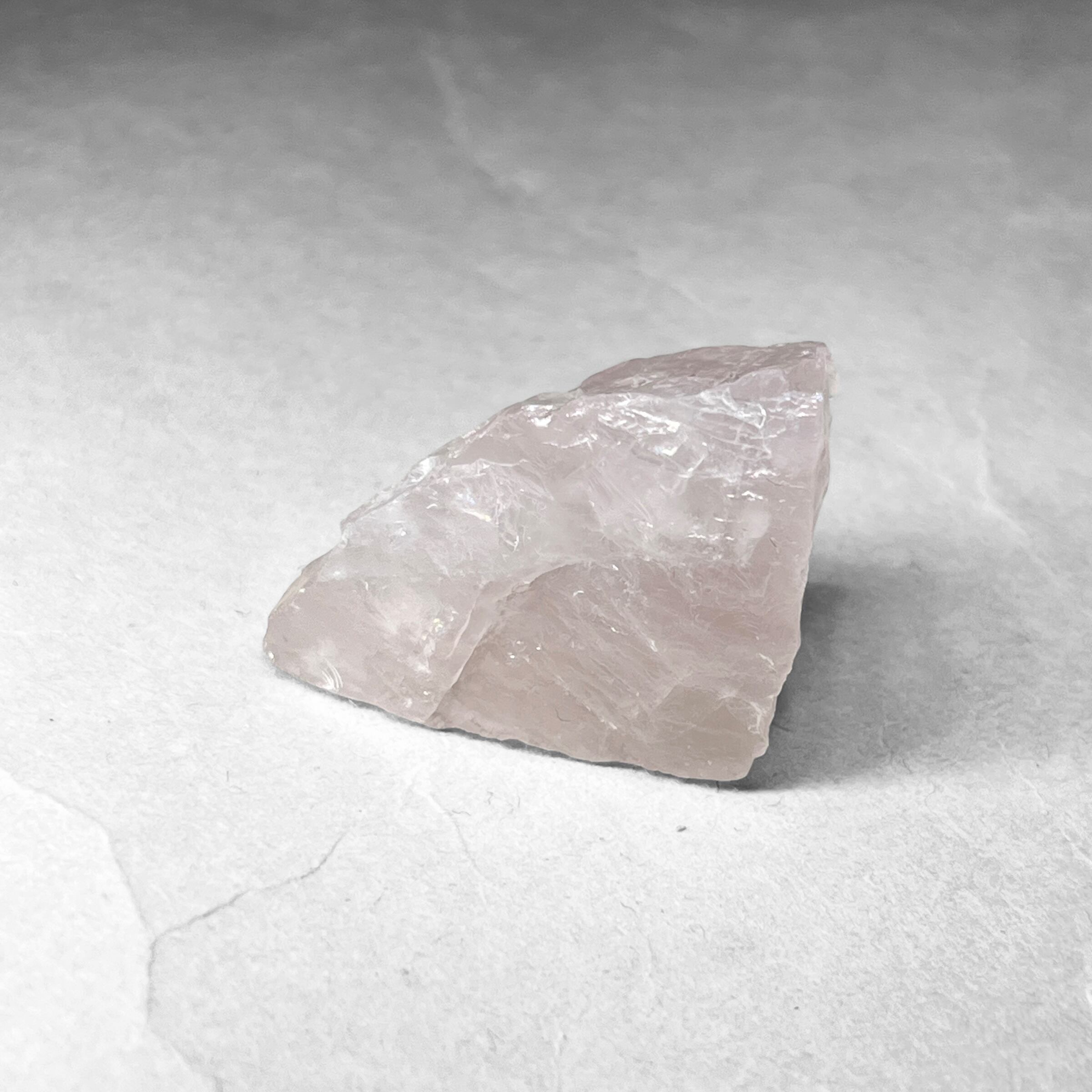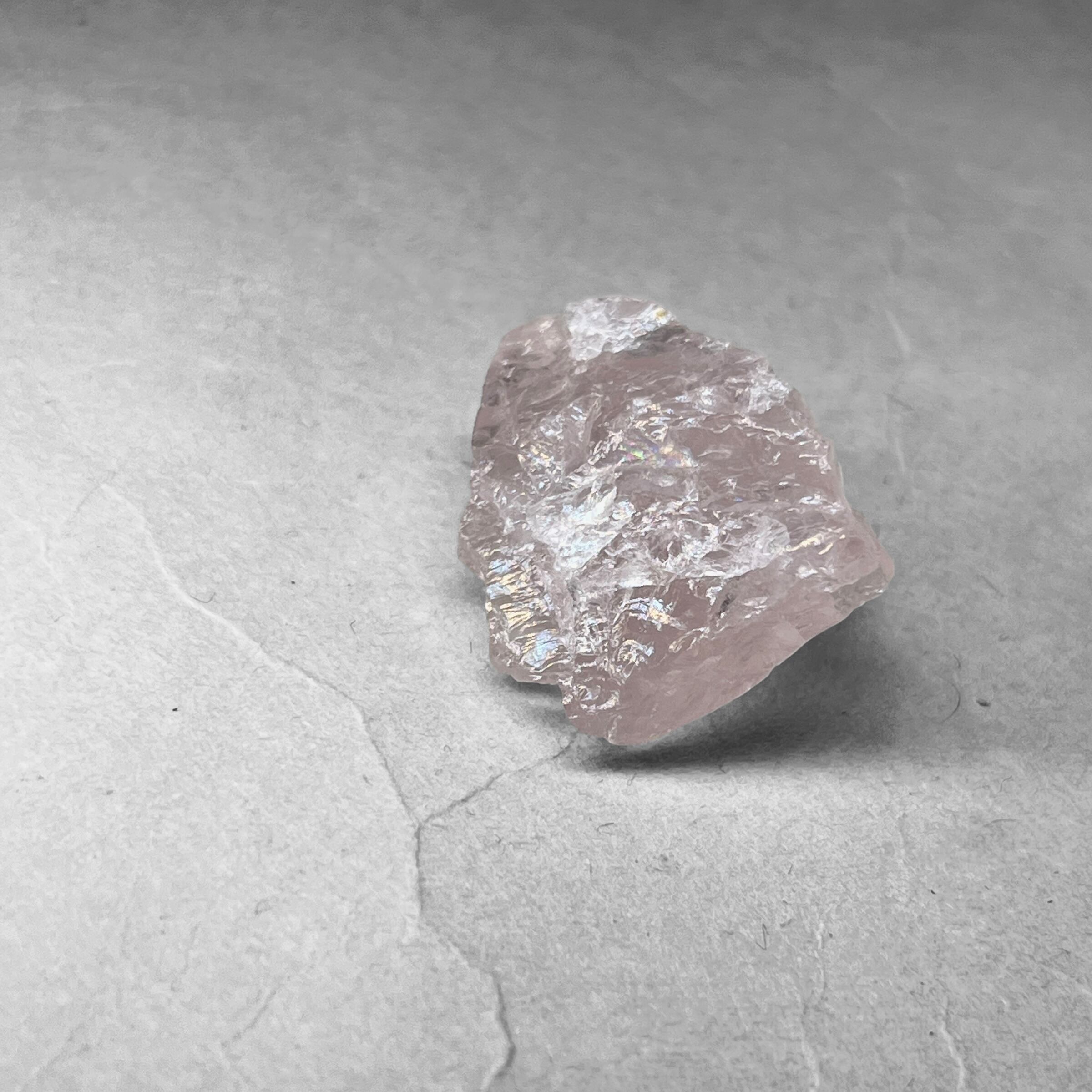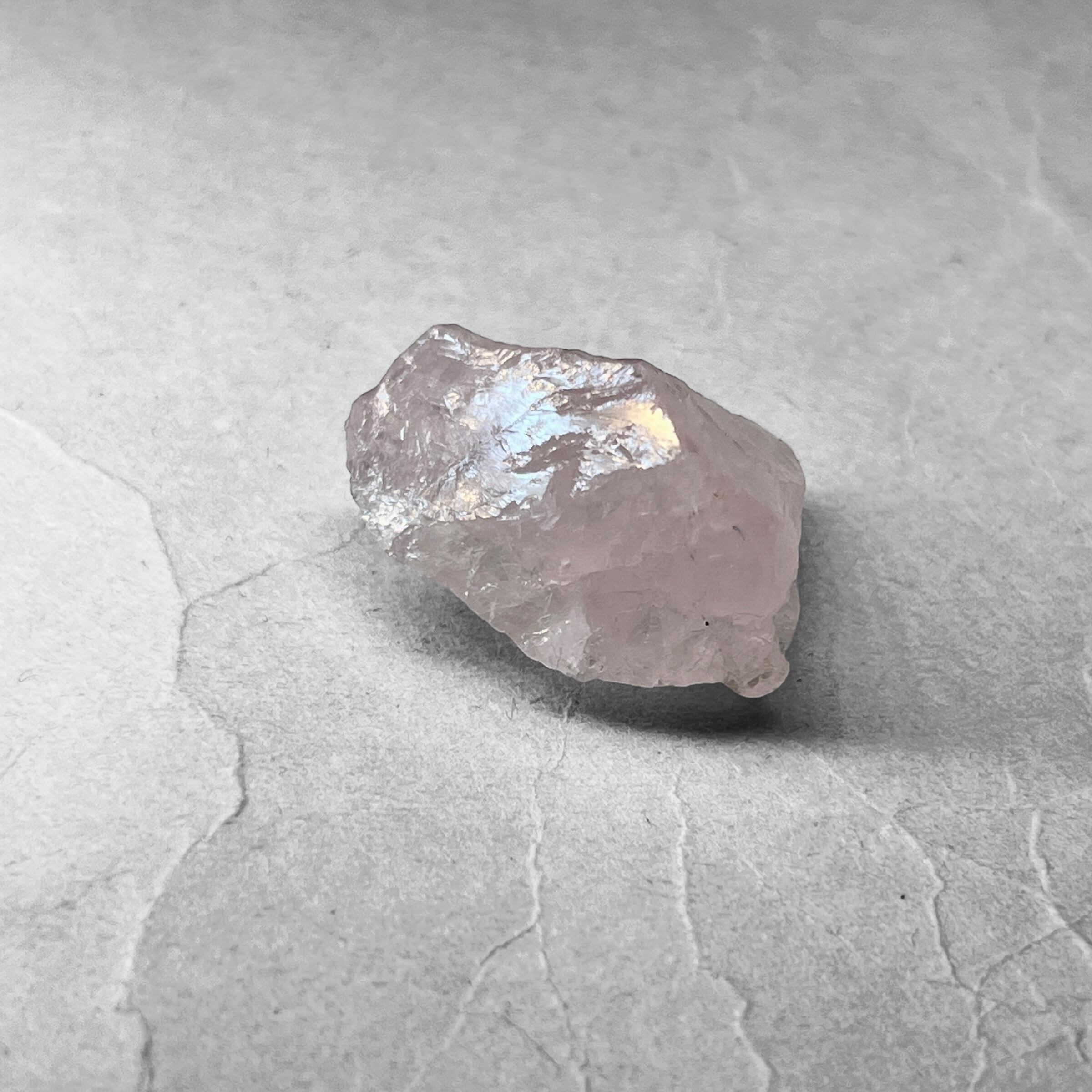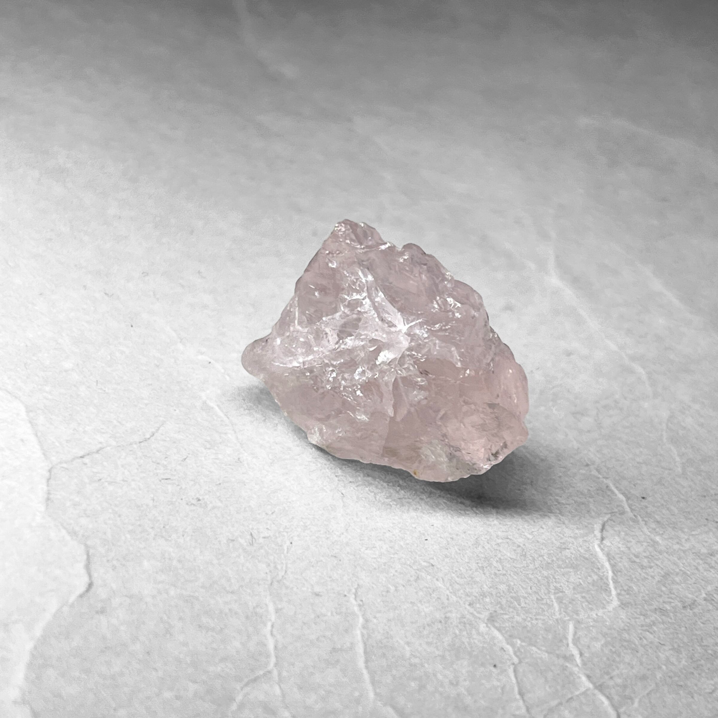 ローズクォーツの特徴である淡いピンク色の発色要因は、内部に含まれた微量のチタン、鉄、アルミニウム成分であると考えられている。