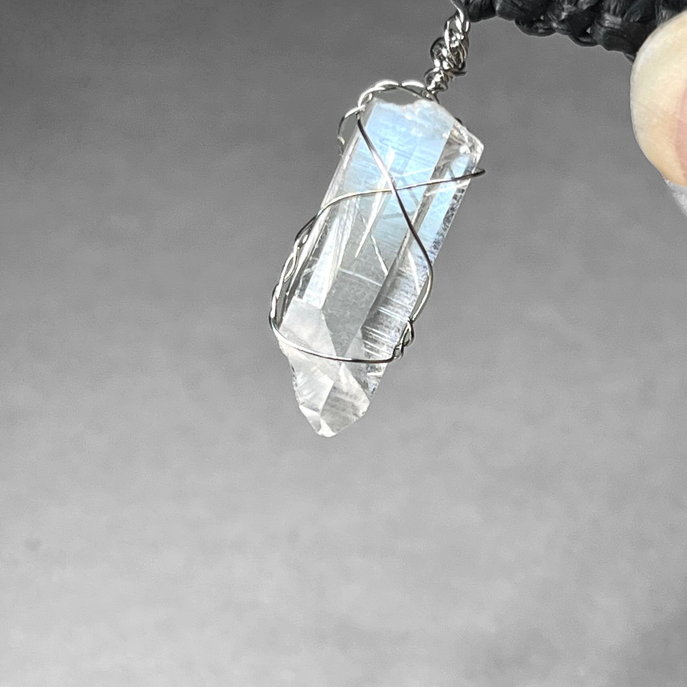 Japanese paper mini strap 4 / ミニ和紙ストラップ:アーカンソー水晶+ステンレス製ワイヤーラッピング