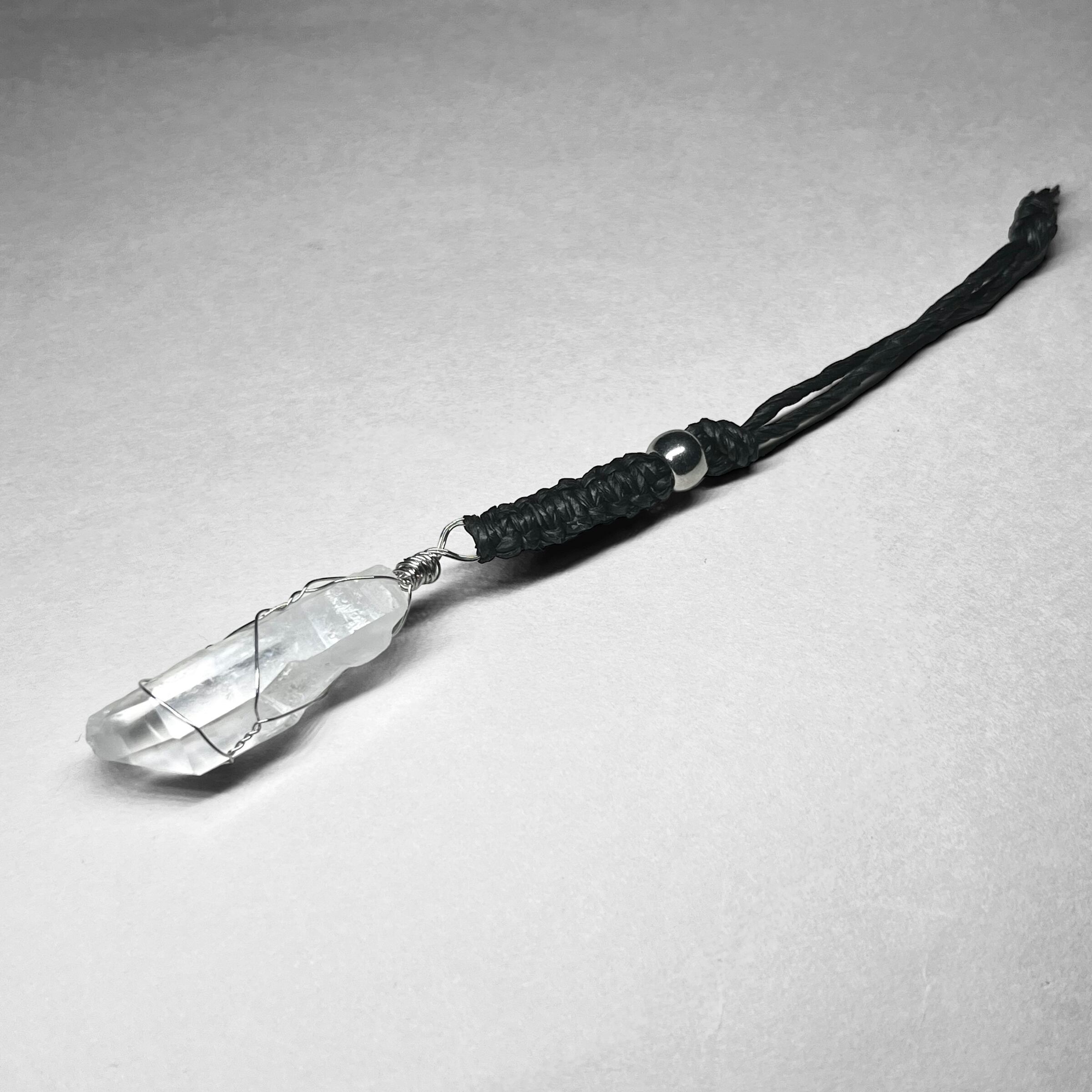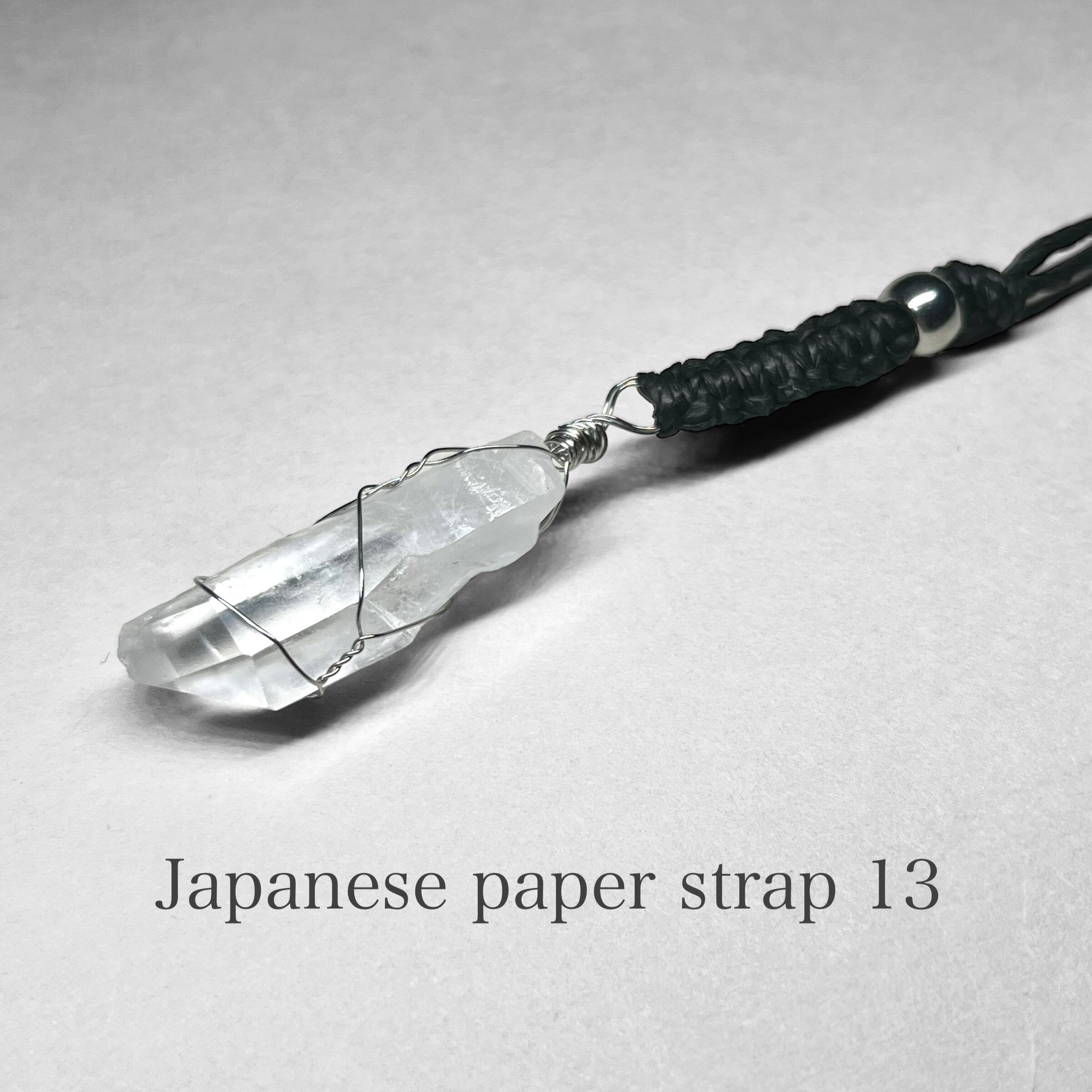 Japanese paper strap 13 / 和紙ストラップ:レムリアン産水晶+ステンレス製ワイヤーラッピング