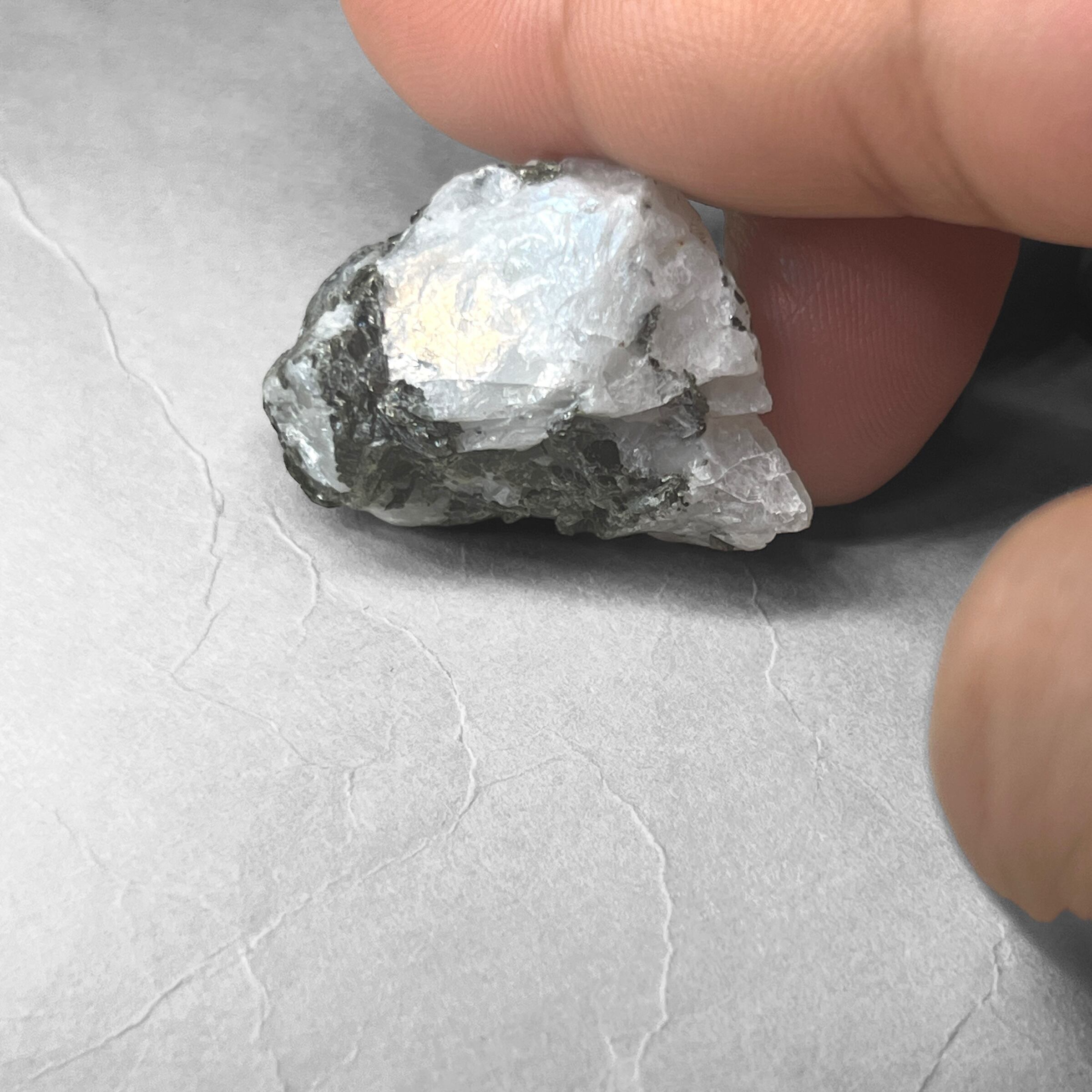 blue moonstone:biotite / ブルームーンストーン原石 A:バイオタイト(黒雲母)